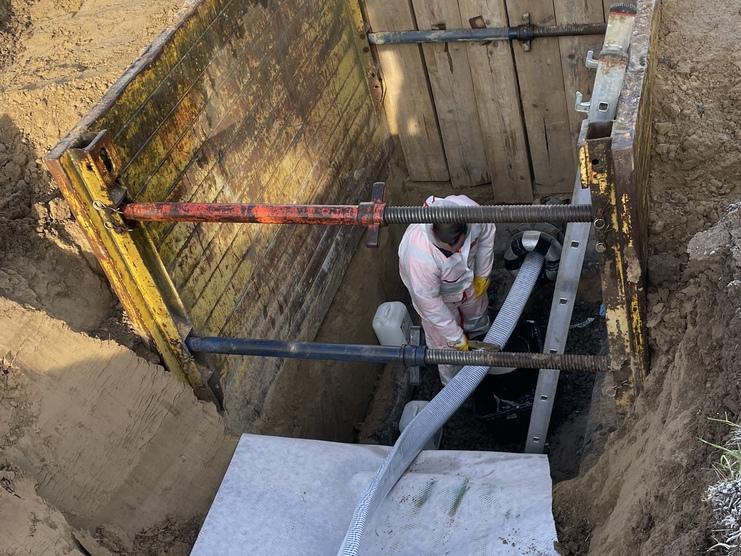 Sanierung einer ca. 600m langen Druckleitung DN 200 PN 16 in Zusammenarbeit mit der Firma Rädlinger primus line inkl. erforderlicher Baugruben, Verbinder-Montagen und Rohrbau-Arbeiten