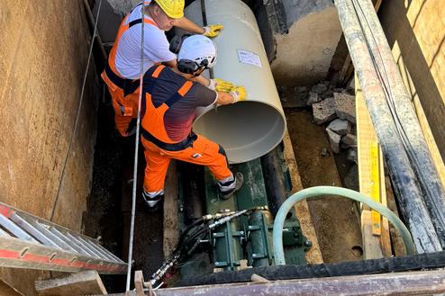 Die Sanierungstechnik Dommel GmbH hat ihren Maschinenpark um eine neue Berstlining-Maschine erweitert. Mit ihrer Zugkraft von 80 Tonnen ist sie besond…