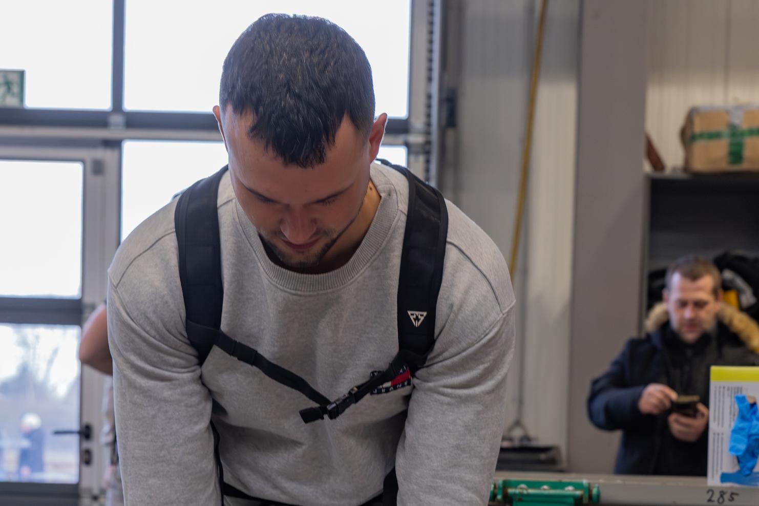 Sicherheit durch Einweisung: Beim „Tag der Sicherheit“ erhielten die Mitarbeitenden eine fachkundige Einweisung in die Funktionsweise der neuen Exoskelette. Bevor die Technologie auf der Baustelle zum Einsatz kommt, ist das korrekte Anlegen und die richtige Handhabung entscheidend für die optimale Schutzwirkung.